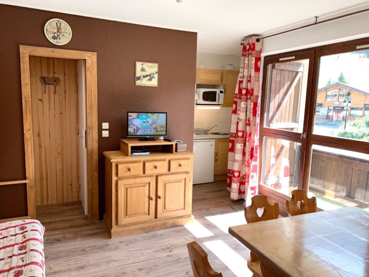 The apartment is at the first floor, in the pedestrian center of the village. With a south exposure, it has a view to the snow park. Is near all shops, ski lifts, snow park, a free covered parking (50 - 100 m).