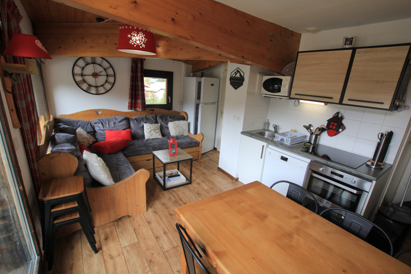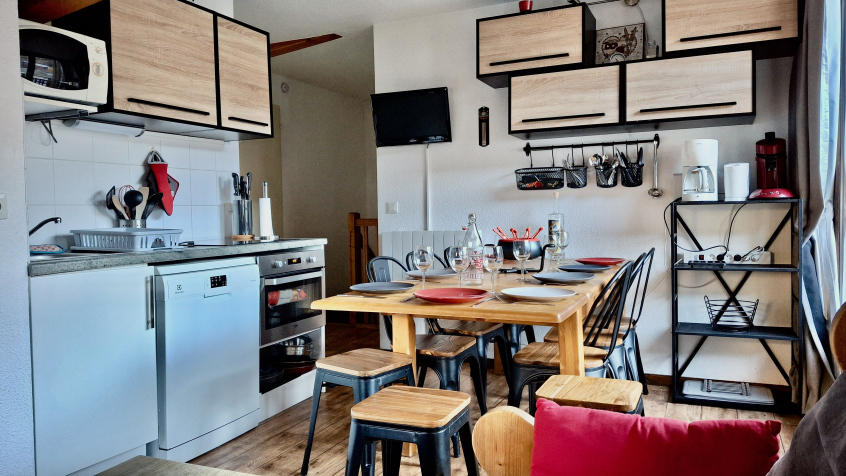 Très confortable avec une décoration soignée, il offre un séjour sans couchage et un grand balcon de 9 m² qui propose une vue imprenable sur la station et les pistes.