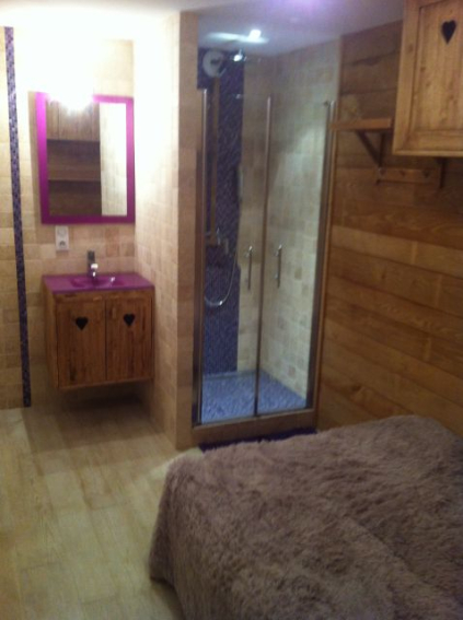 1 chambre avec lit double 160X200 + placard de rangement + salle d'eau individuelle avec douche à l'italienne et plan vasque.
