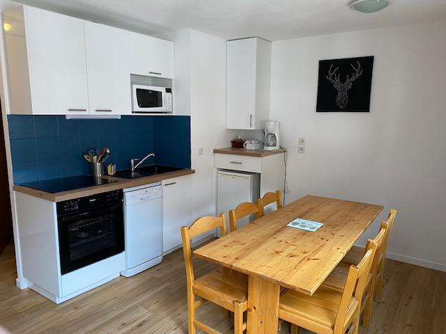 Pièce à vivre, balcon et baie vitrée, coin salon avec TV écran LCD avec port USB. Cuisine avec plaque de cuisson (4 feux), 1 réfrigérateur, micro onde, four, lave vaisselle, cafetière, appareil à raclette. Jeux de société adultes et enfants.